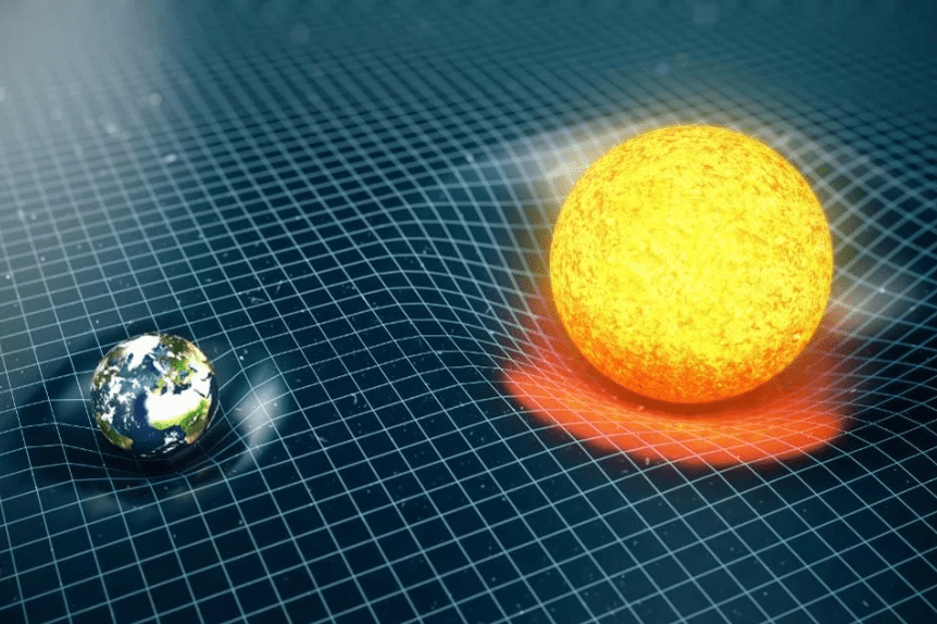 La ragione principale dell’esistenza dello spaziotempo fu quella di spiegare come funziona la forza di gravità, di cui abbiamo già parlato in un articolo precedente che puoi trovare qui. La forza di gravità era infatti ben nota già da secoli al tempo di Einstein, tuttavia nessuno, nemmeno Newton che la concretizzò in una formula matematica, era ancora riuscito a scoprire come facesse ad agire. Questa forza infatti è sempre attiva anche in assenza di un mezzo agente fra i due corpi, fra la Terra ed il Sole infatti c’è il vuoto, ossia nulla su cui la forza di gravità possa fare presa per far interagire i due corpi. Il modello newtoniano dà un’interpretazione matematica soddisfacente al fenomeno della gravità, infatti con la legge di gravitazione universale è possibile calcolare la forza gravitazionale agente fra due corpi dotati di massa con estrema precisione, tuttavia non spiega come questa forza agisca.